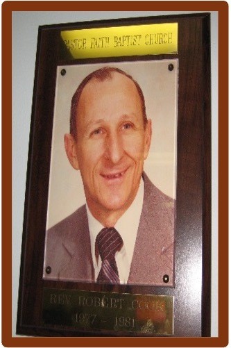 Rev. Robert G. Cook was called as pastor of Faith Baptist Church on February 23, 1977. He began his work as pastor on February 27, 1977.